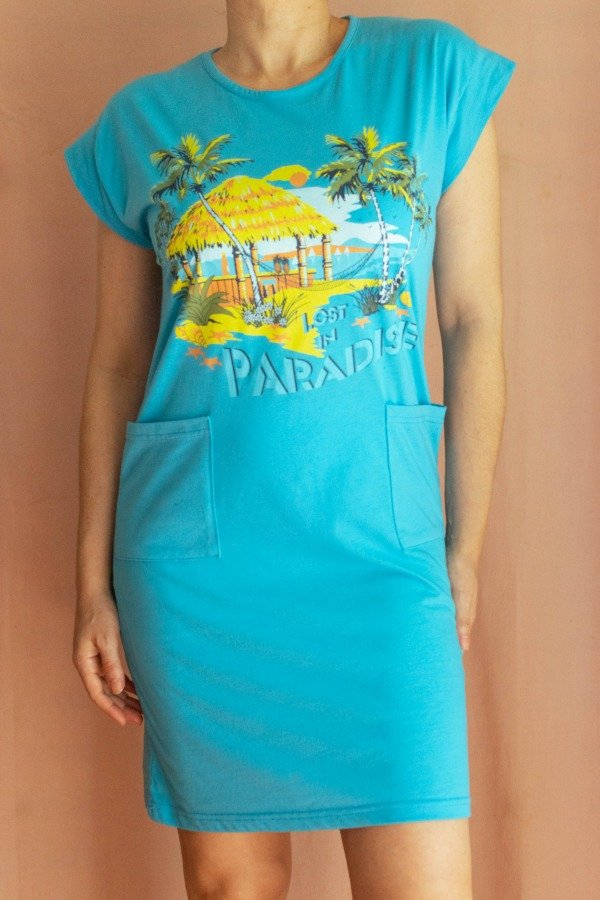 Remeron de algodón y polyester en color turquesa con estampado único.